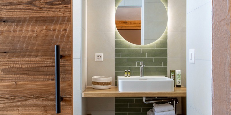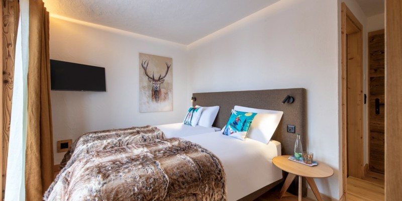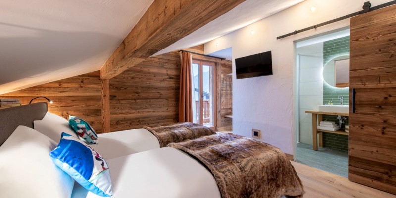 Pour une ambiance chaleureuse et accueillante, des solutions optimisant l’espace des chambres ont été mises en place avec du mobilier modulable. Le confort acoustique a été amélioré.La valorisation de l’artisanat local et l’utilisation de matériaux bruts ont été priorisés, renforçant l’authenticité et la chaleur de l’atmosphère chalet