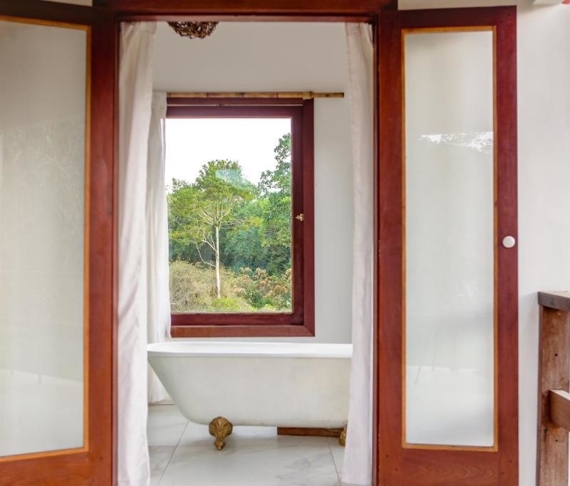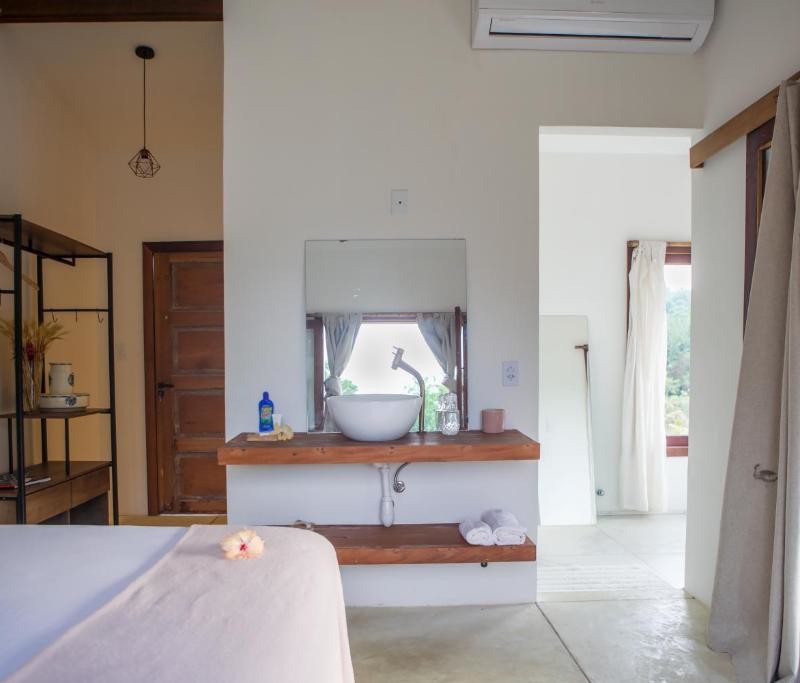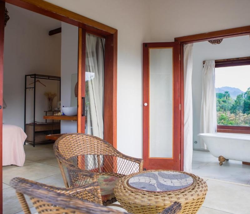 ECO Guest House « Fazenda do Francês« , une oasis de durabilité et de tranquillité au cœur de la forêt tropicale de Cachoeiras de Macacu, Rio de Janeiro, Brésil. Notre projet de transformation a métamorphosé l’ancienne laiterie du domaine en trois chambres d’hôtes, intégrant harmonieusement l’architecture locale avec des matériaux récupérés et produits par des artisans de la région. Chaque détail de notre conception vise à immerger les visiteurs dans leur environnement naturel, favorisant ainsi une connexion authentique avec la nature environnante.